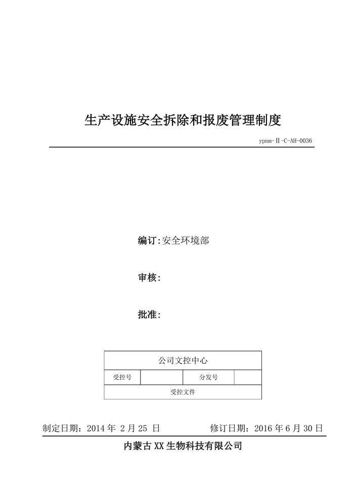 36、生產(chǎn)設(shè)施安全拆除和報廢管理制度doc