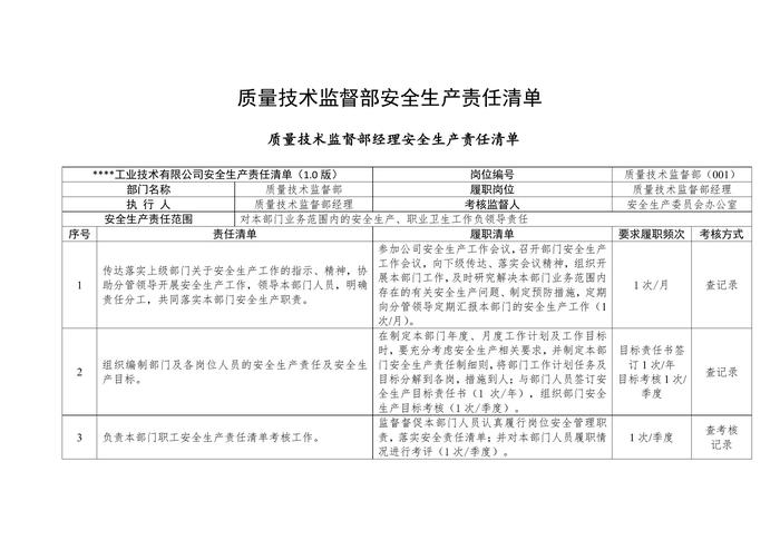 質(zhì)量技術(shù)監(jiān)督部安全生產(chǎn)責任清單docx