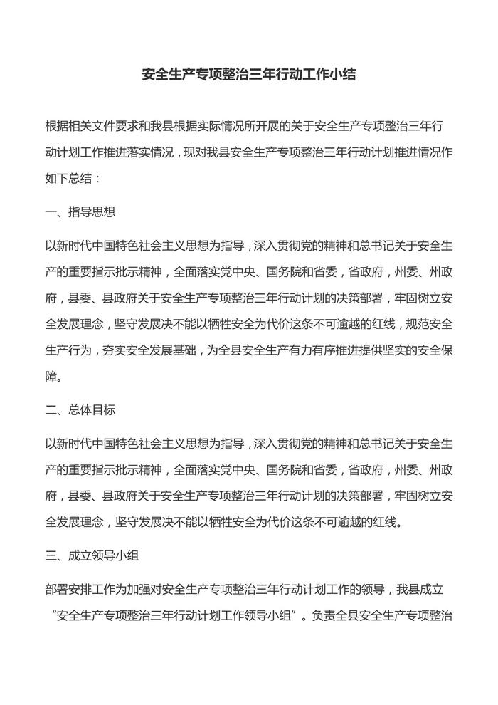 安全生產(chǎn)專項(xiàng)整治三年行動(dòng)工作小結(jié)docx