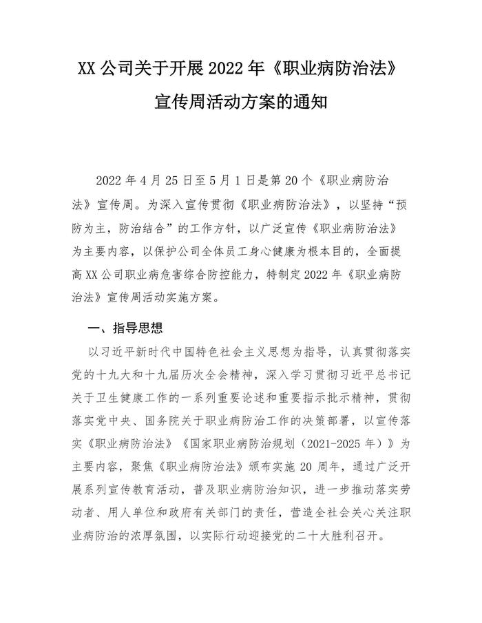 2022年《職業(yè)病防治法》宣傳周活動方案docx