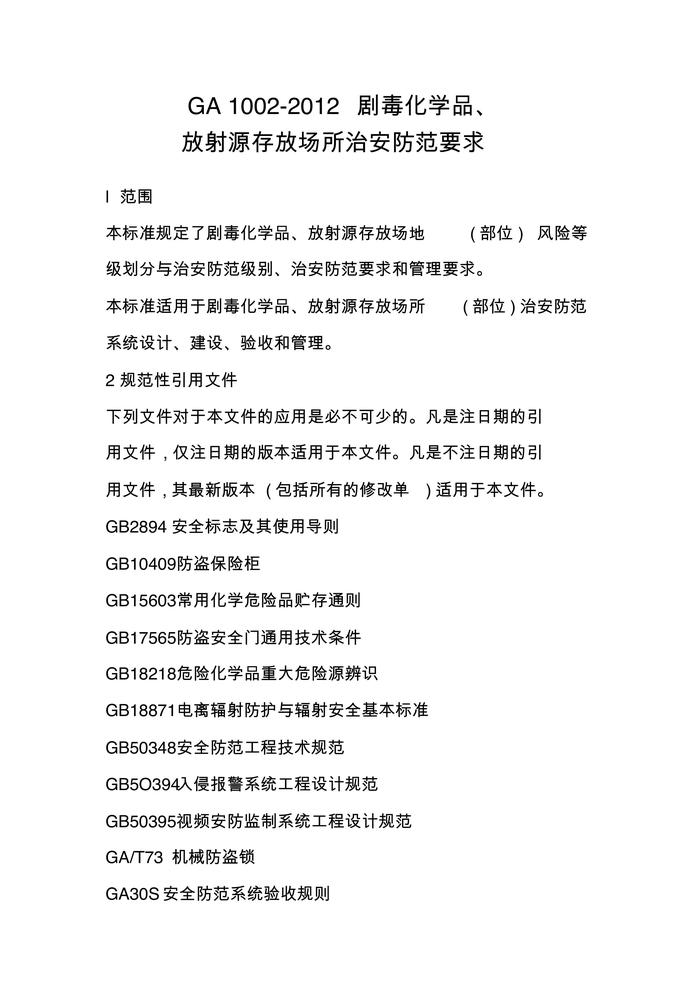 GA_1002-2012 劇毒化學(xué)品、放射源存放場所治安防范要求pdf