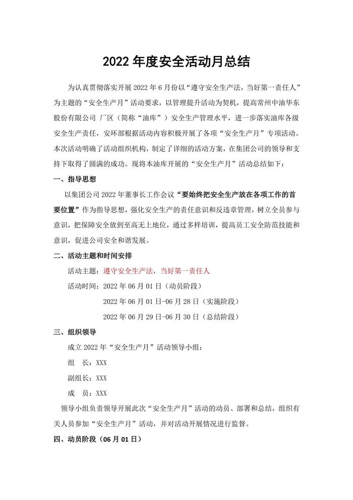 安全生產(chǎn)月總結(jié)精華范本10docx