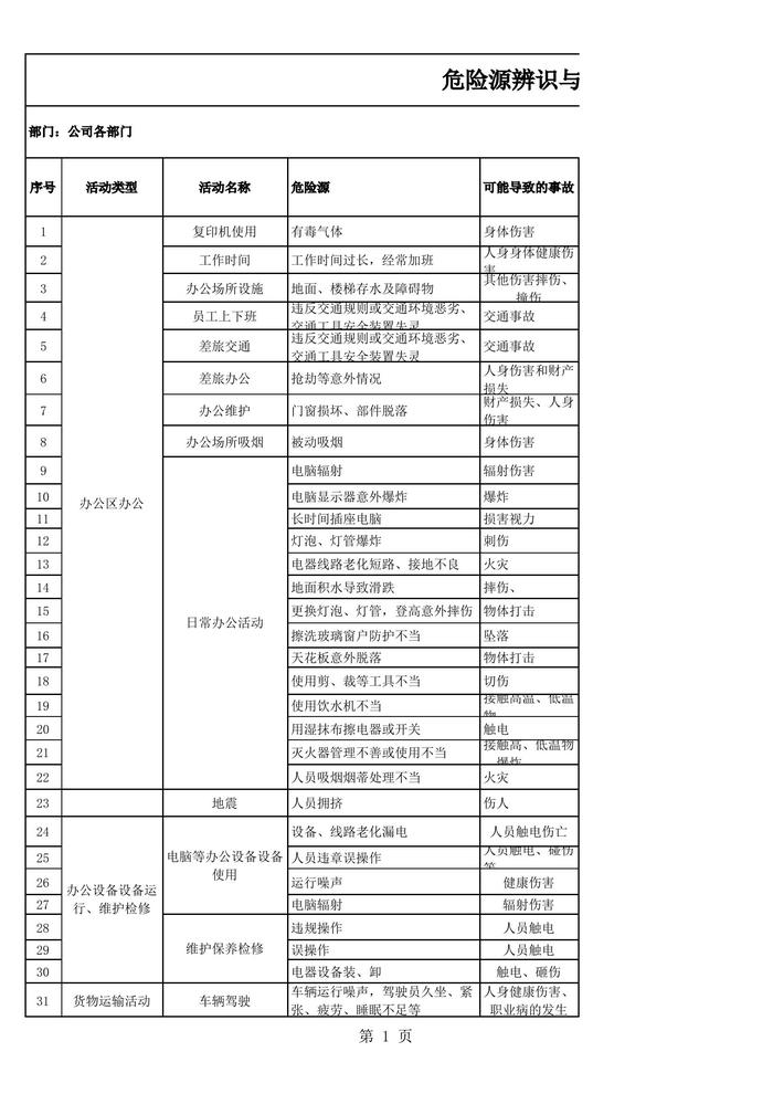 物流貨運行業(yè)危險源辨識與評價清單完整版xls