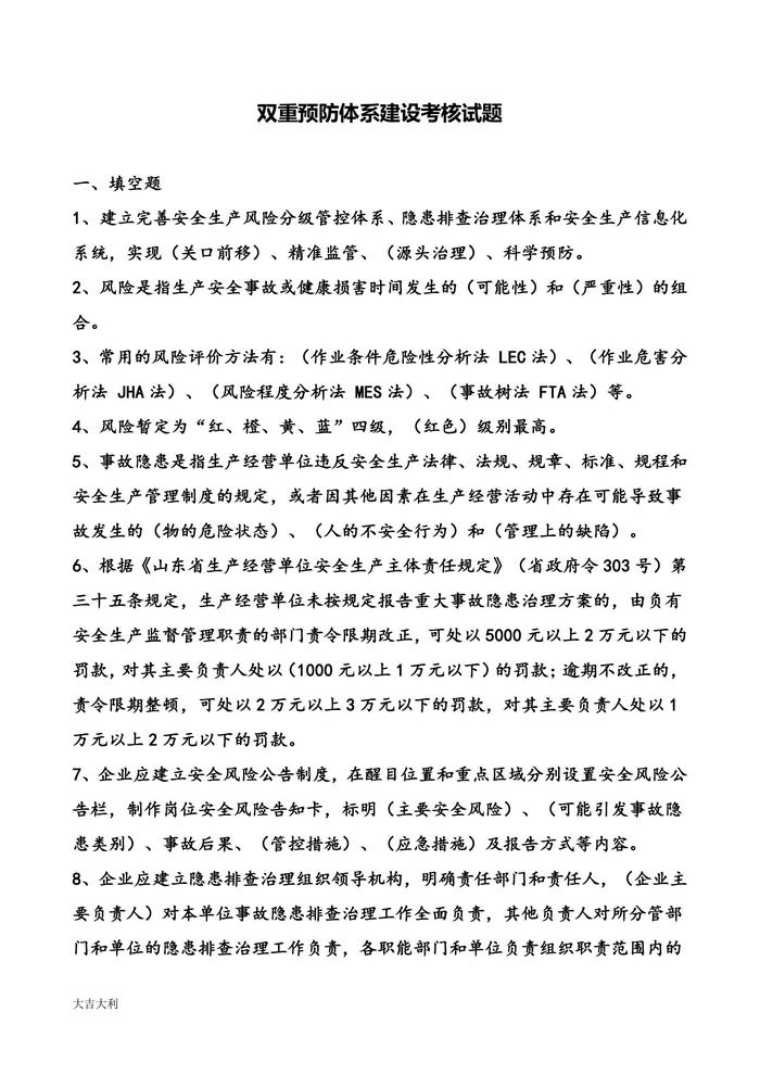 雙重預(yù)防體系建設(shè)考核試題docx