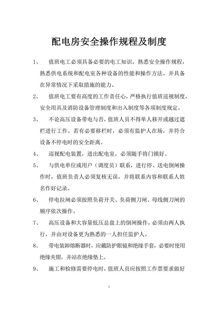 配電房安全操作規(guī)程及制度docx