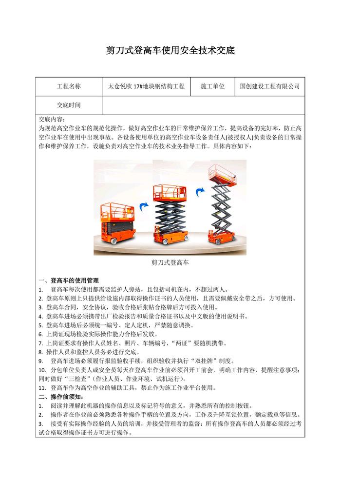 剪刀式登高車安全技術(shù)交底docx