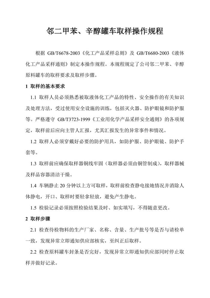 原料車取樣操作規(guī)程doc