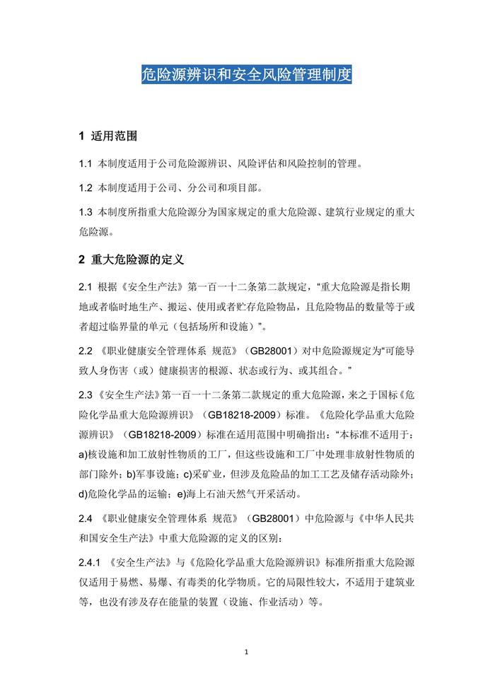 危險(xiǎn)源的辨識(shí)和安全風(fēng)險(xiǎn)管理制度docx