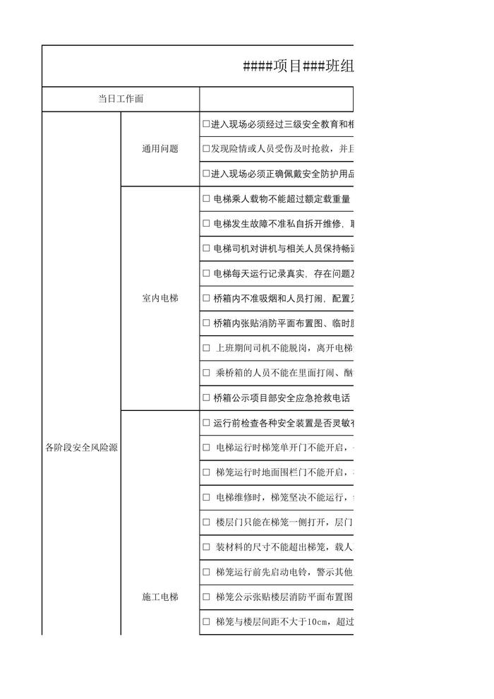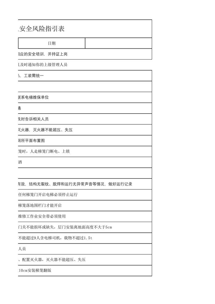 施工電梯司機安全生產(chǎn)指引表xlsx