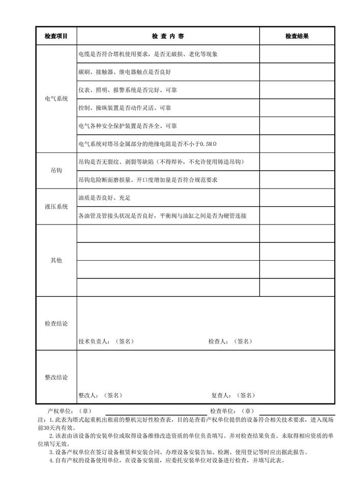 塔式起重機出租前檢查表xls