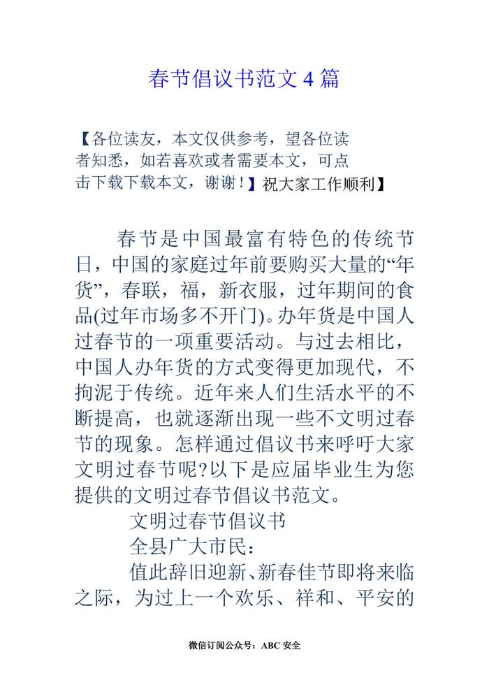 春節(jié)倡議書范文4篇doc