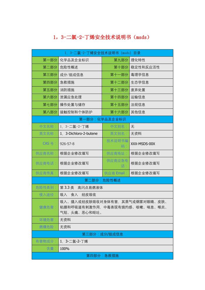 1-3-二氯-2-丁烯安全技術說明書(msds)docx