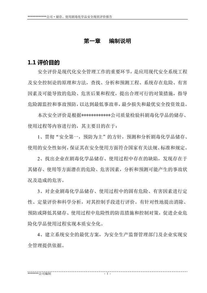儲存、使用劇毒化學(xué)品安全現(xiàn)狀評價(jià)報(bào)告doc 儲存、使用劇毒化學(xué)品安全現(xiàn)狀評價(jià)報(bào)告doc