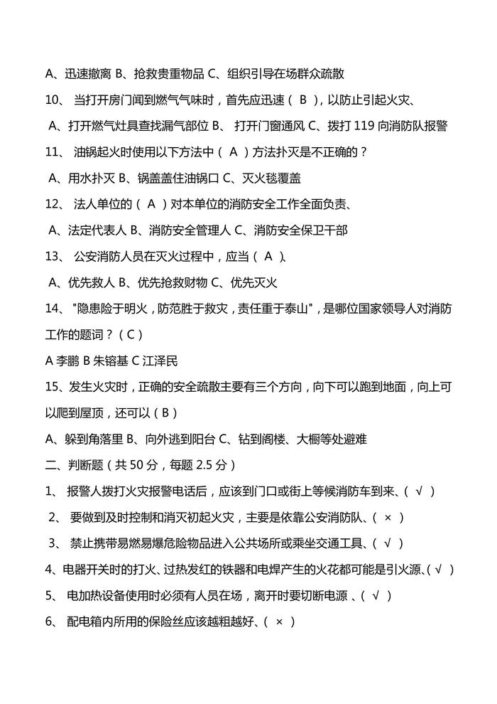 消防基礎知識測試題docx