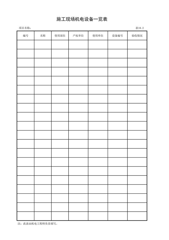 施工現(xiàn)場(chǎng)機(jī)電設(shè)備一覽表xls