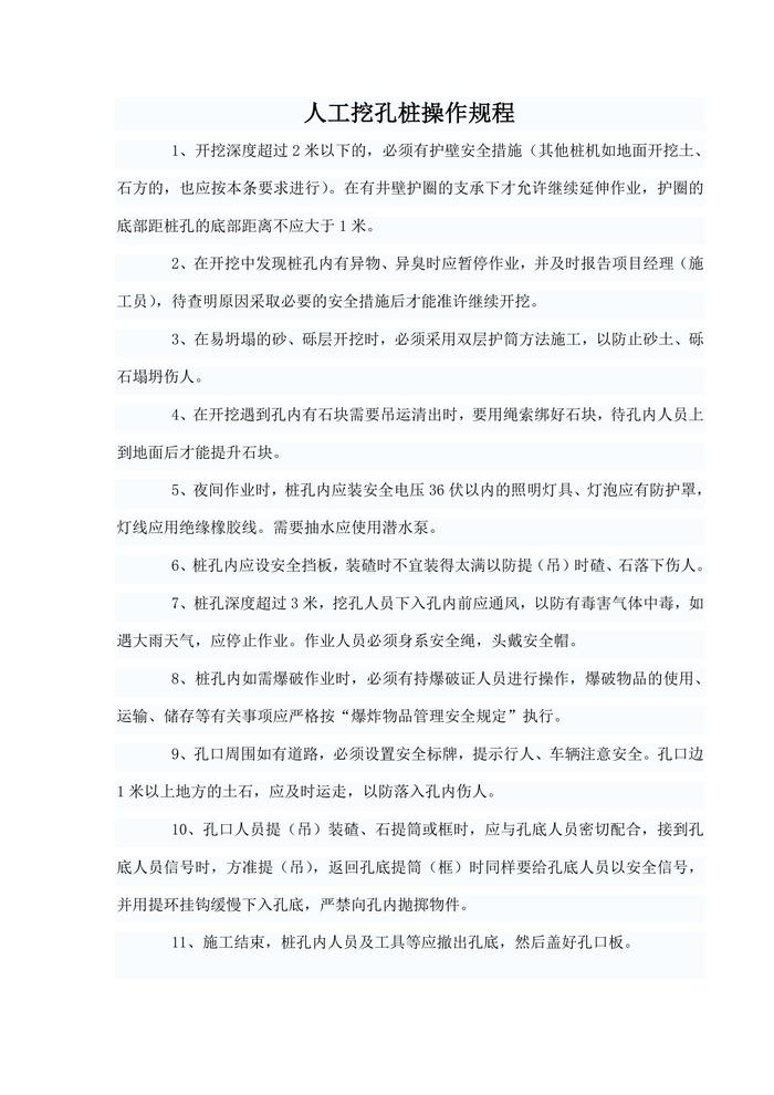 人工挖孔樁操作規(guī)程doc