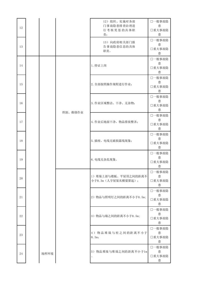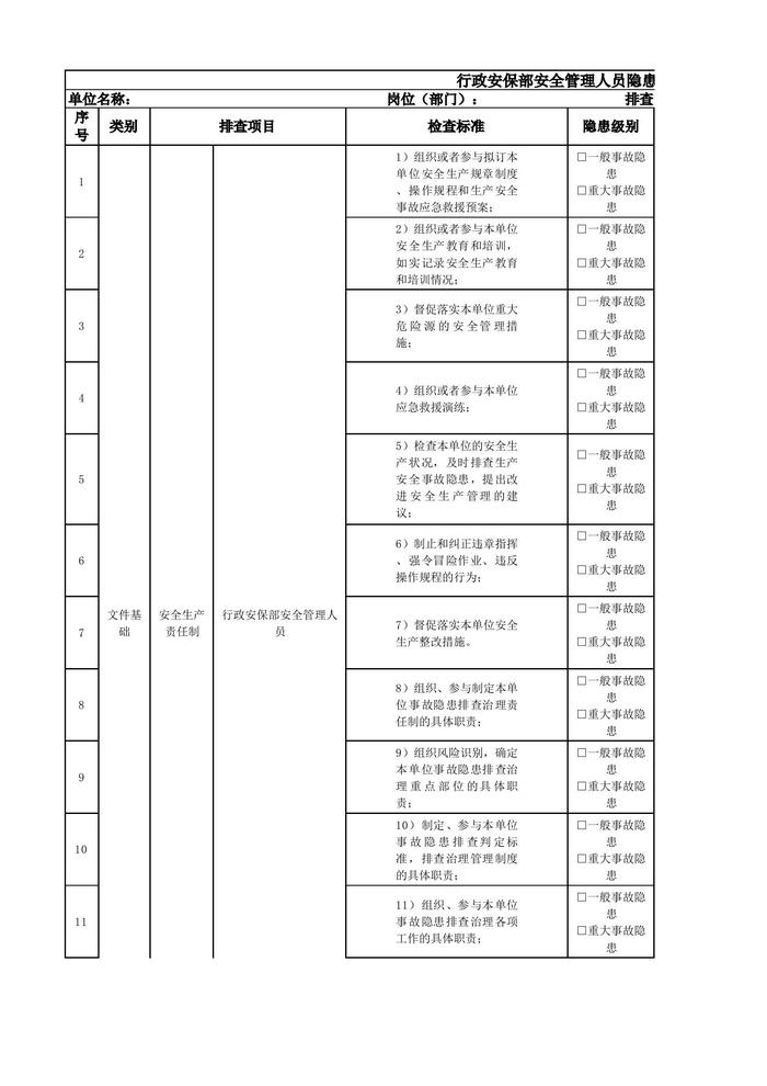 行政安保部安全管理人員隱患排查清單xlsx