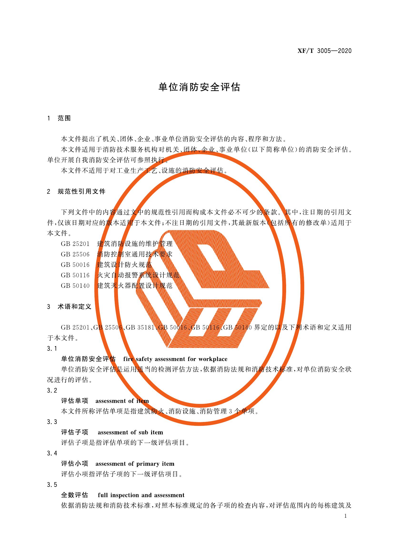 XFT 3005-2020 單位消防安全評估pdf