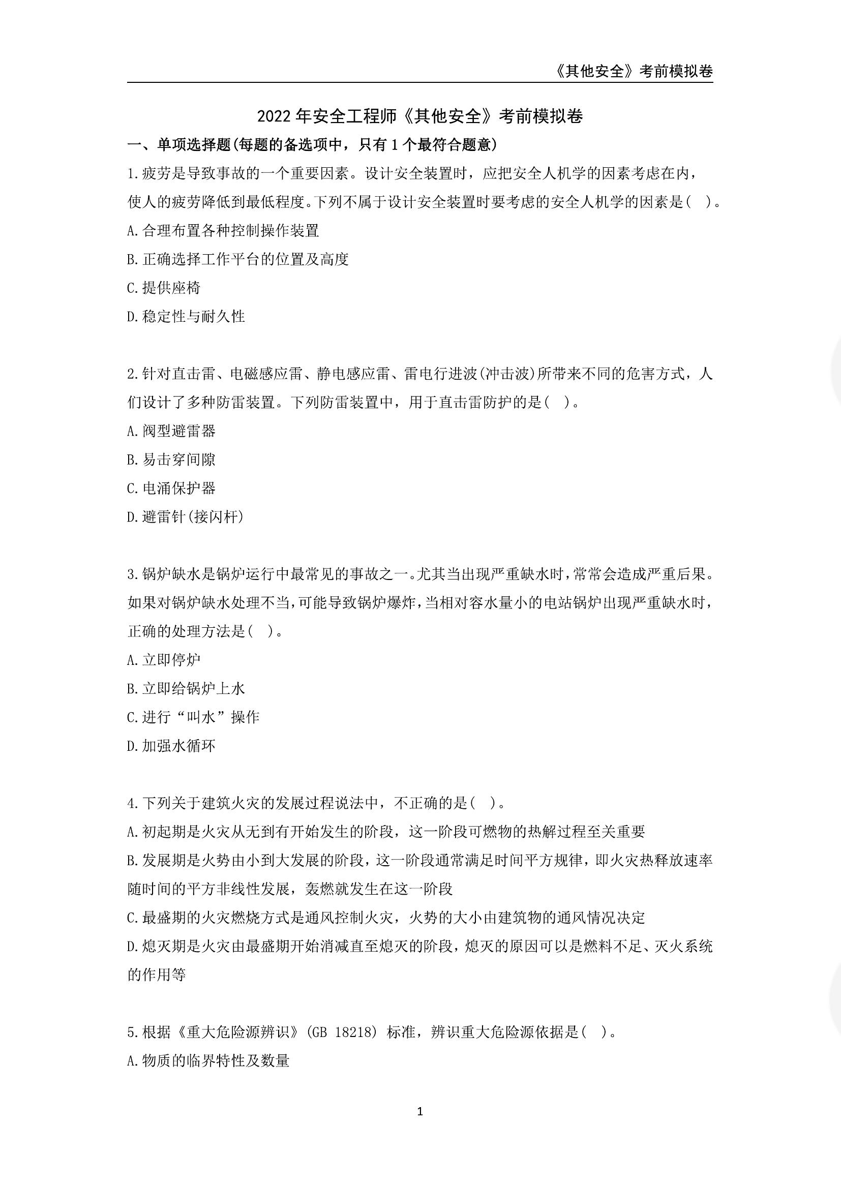 【其他】2022注安黃金考前預(yù)測(cè)卷(推薦)pdf