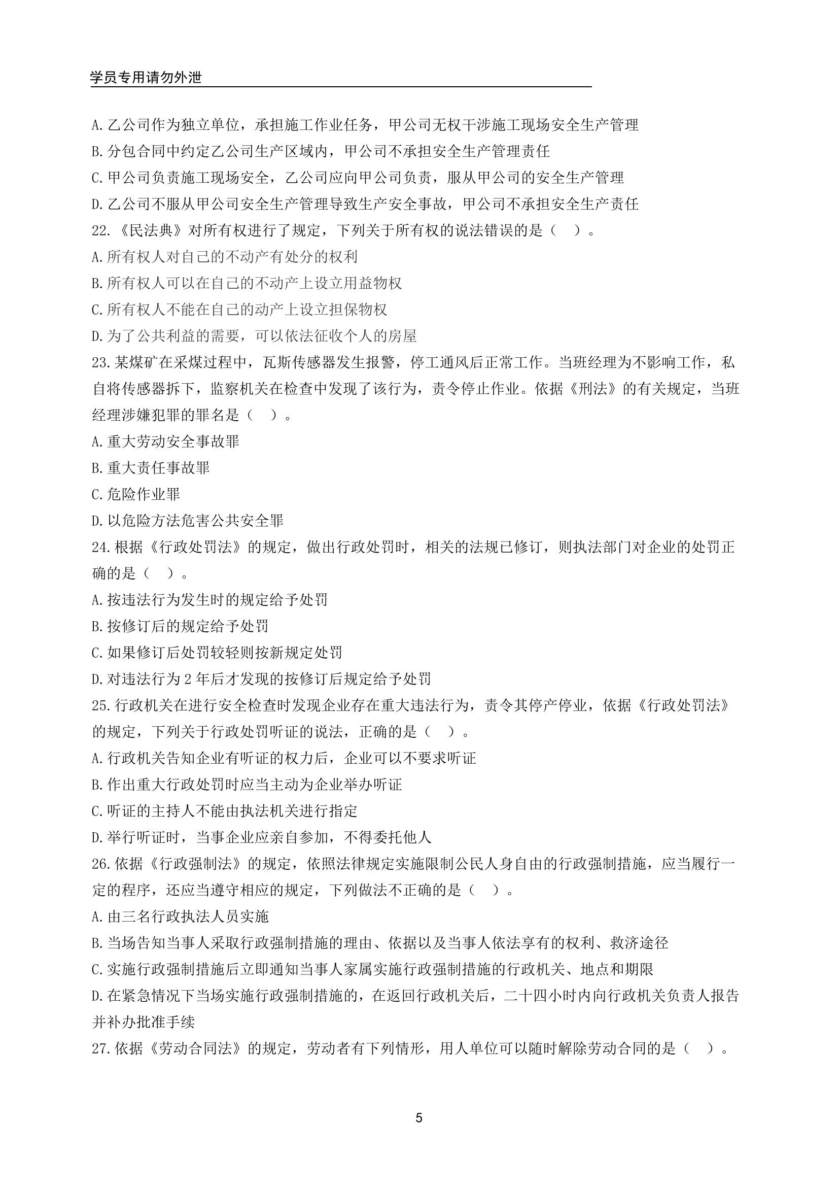 2022中級(jí)注安臨考沖刺模擬卷:法規(guī)二pdf