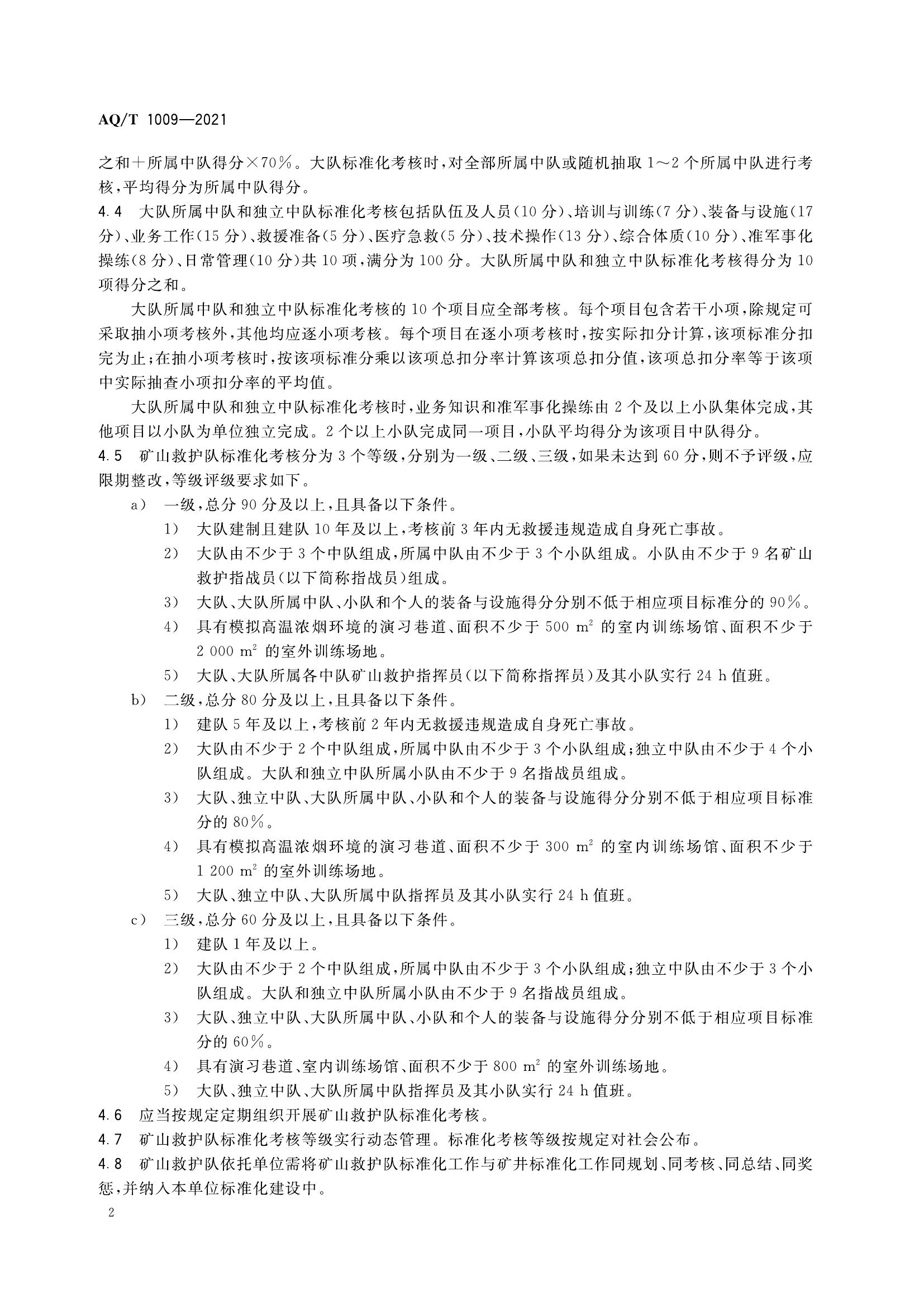 AQT 1009-2021 礦山救護(hù)隊(duì)標(biāo)準(zhǔn)化考核規(guī)范pdf