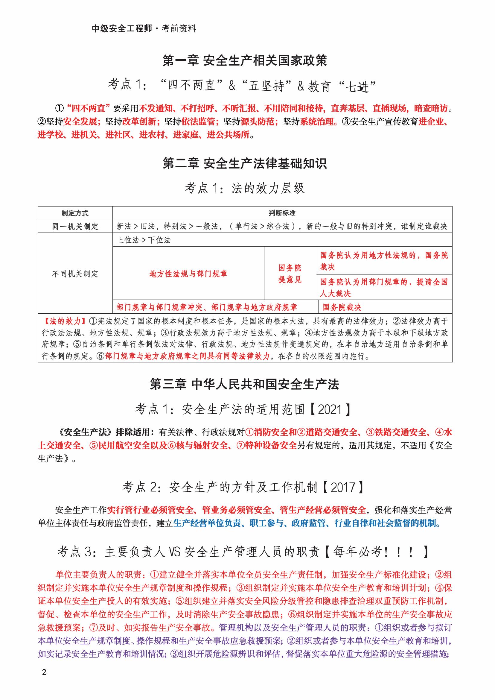 2022年注安《法規(guī)》考前十頁紙pdf