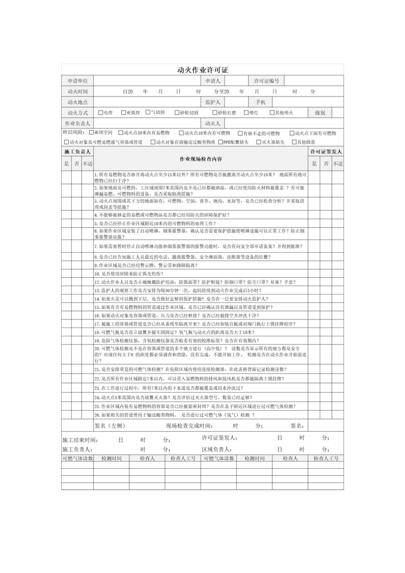 個人結合國標要求和模板以及工作經驗優(yōu)化了國標動火作業(yè)證模板格式與內容docx