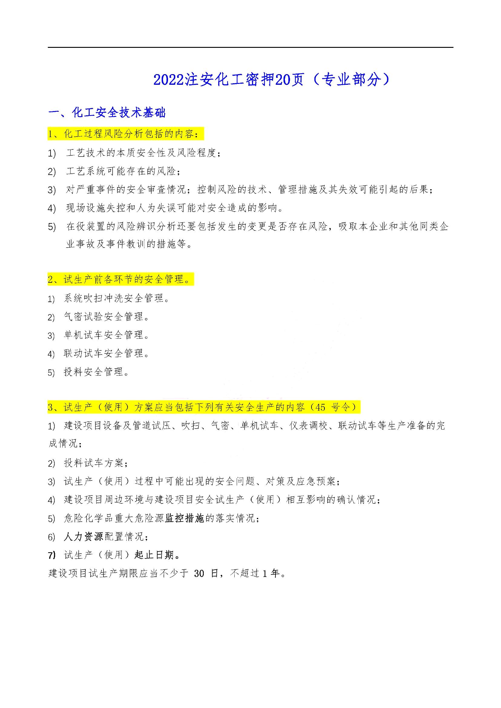 2022注冊(cè)安全工程師《化工安全》密押20頁(yè) (專業(yè)部分)pdf