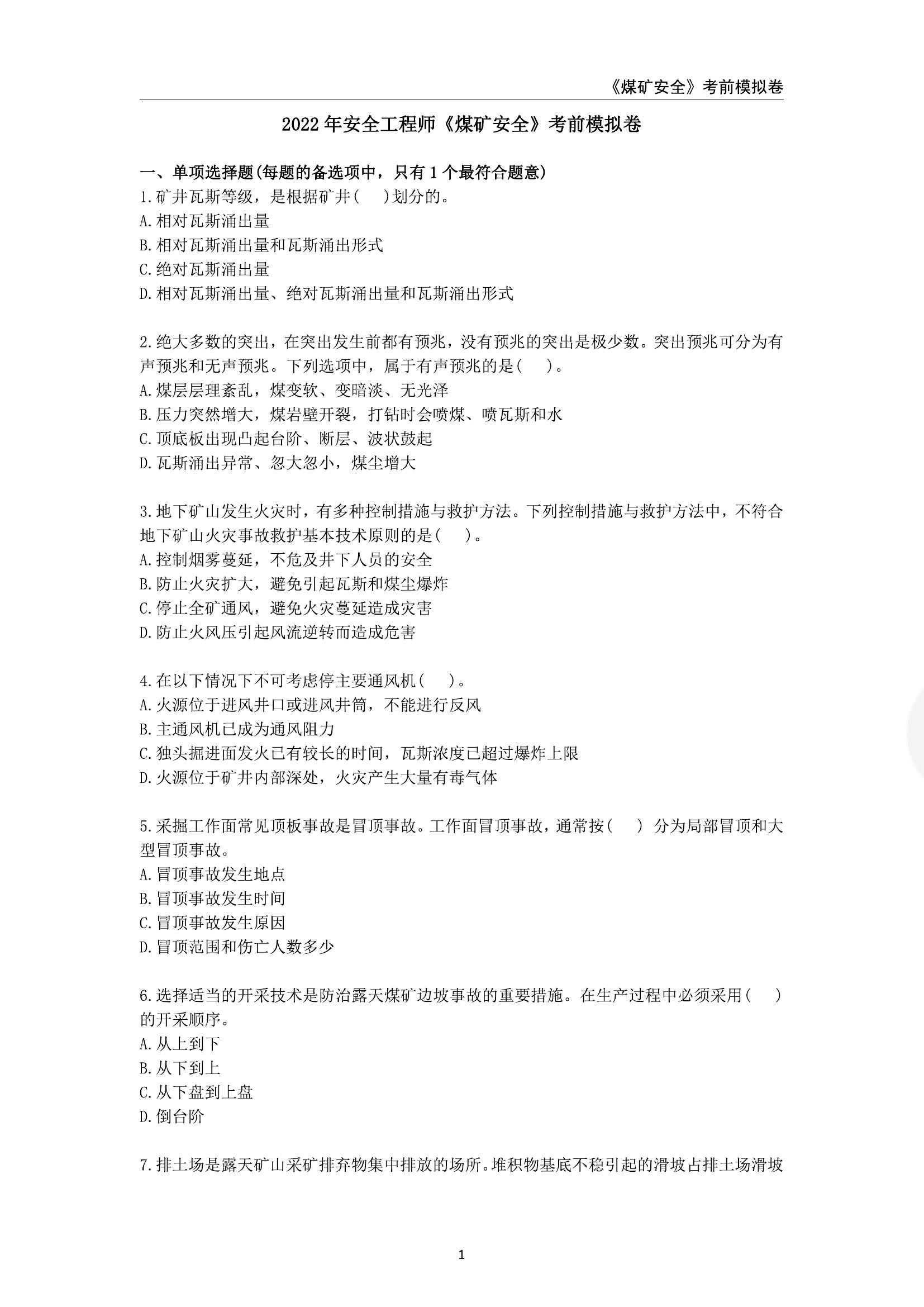 【煤礦】2022注安黃金考前預(yù)測卷(推薦)pdf