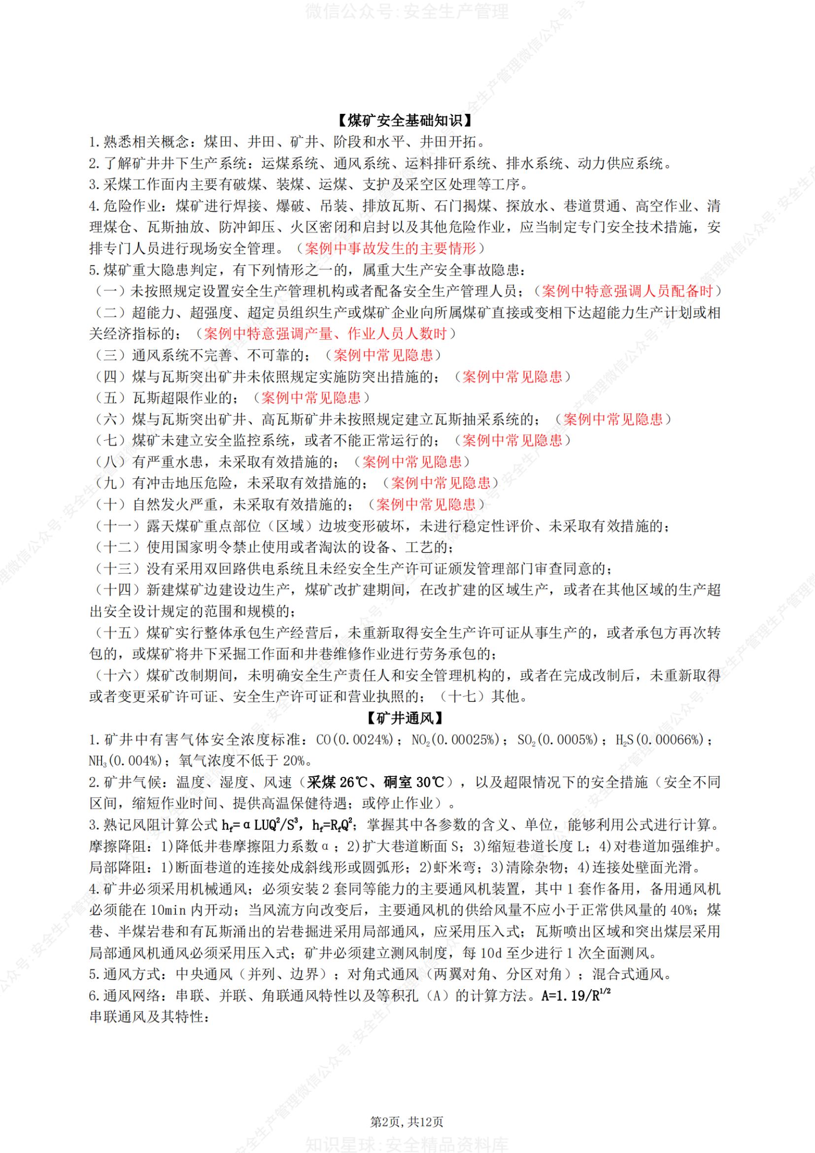 2022年注安實務(wù)《煤礦安全》考前十頁紙pdf