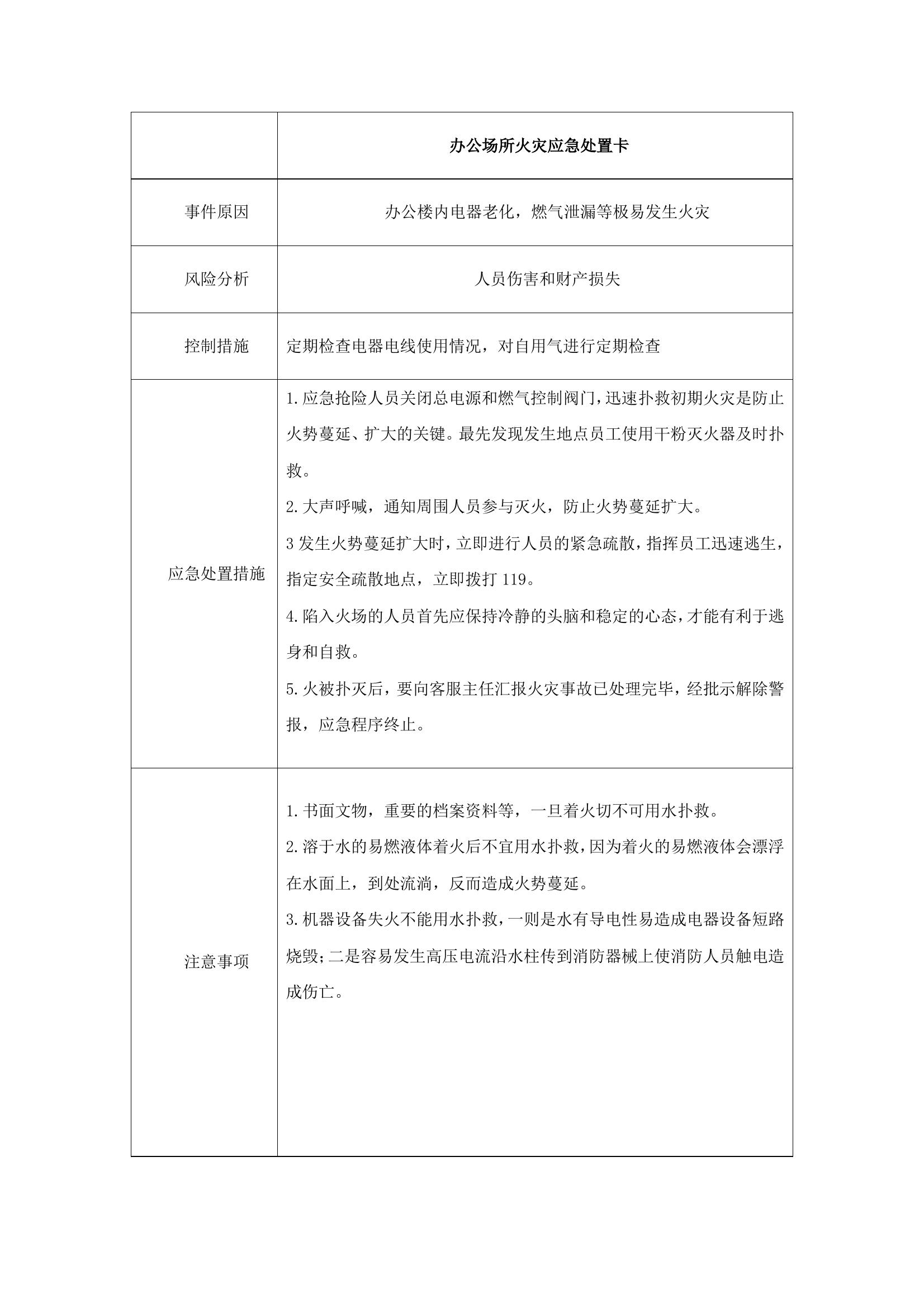 辦公場(chǎng)所火災(zāi)應(yīng)急處置卡docx