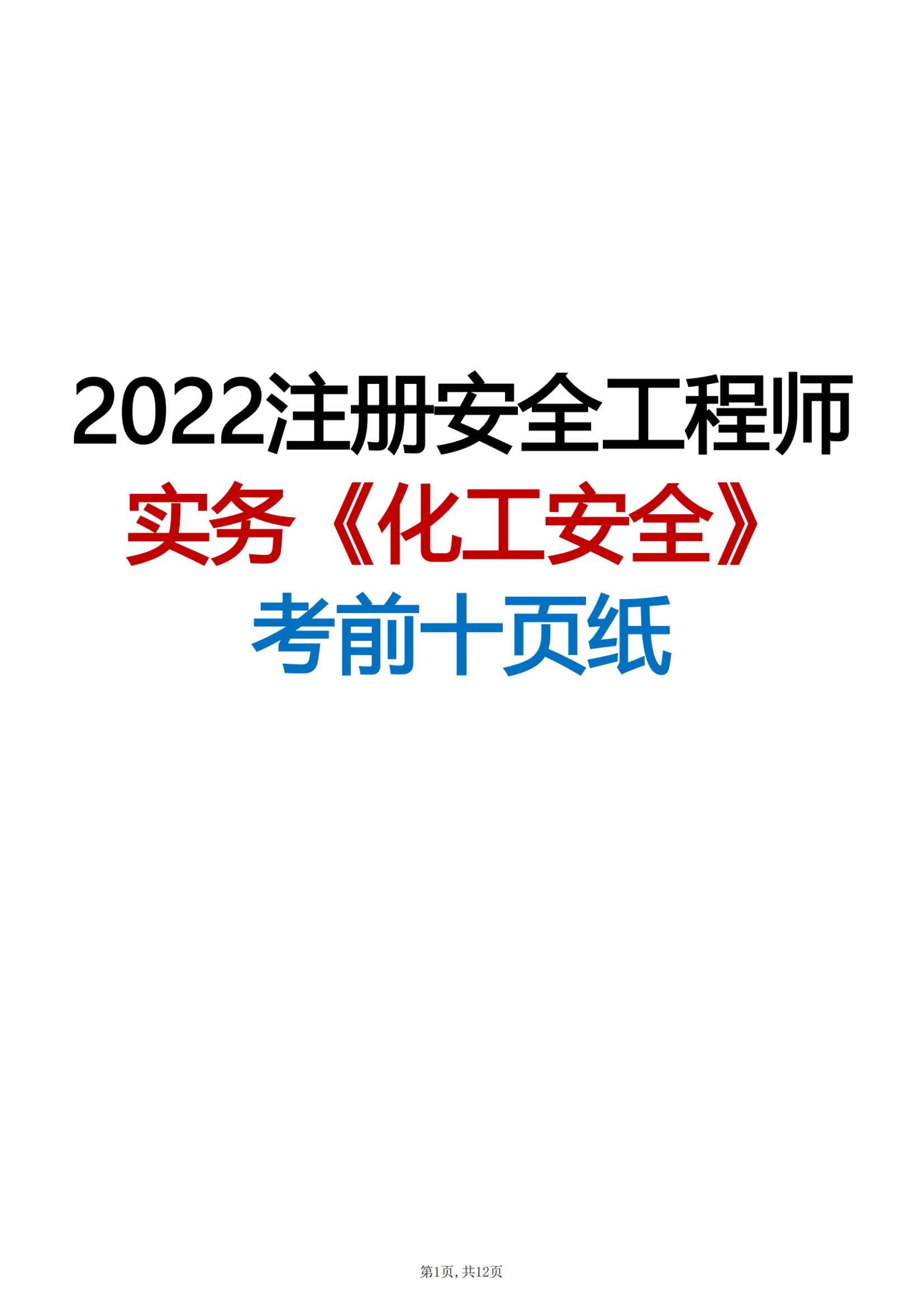 2022年注安實務(wù)《化工安全》考前十頁紙pdf
