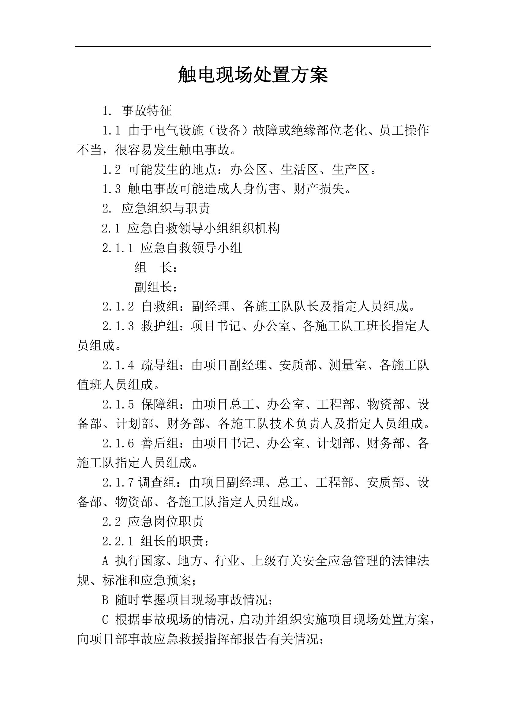 觸電現(xiàn)場(chǎng)處置方案docx