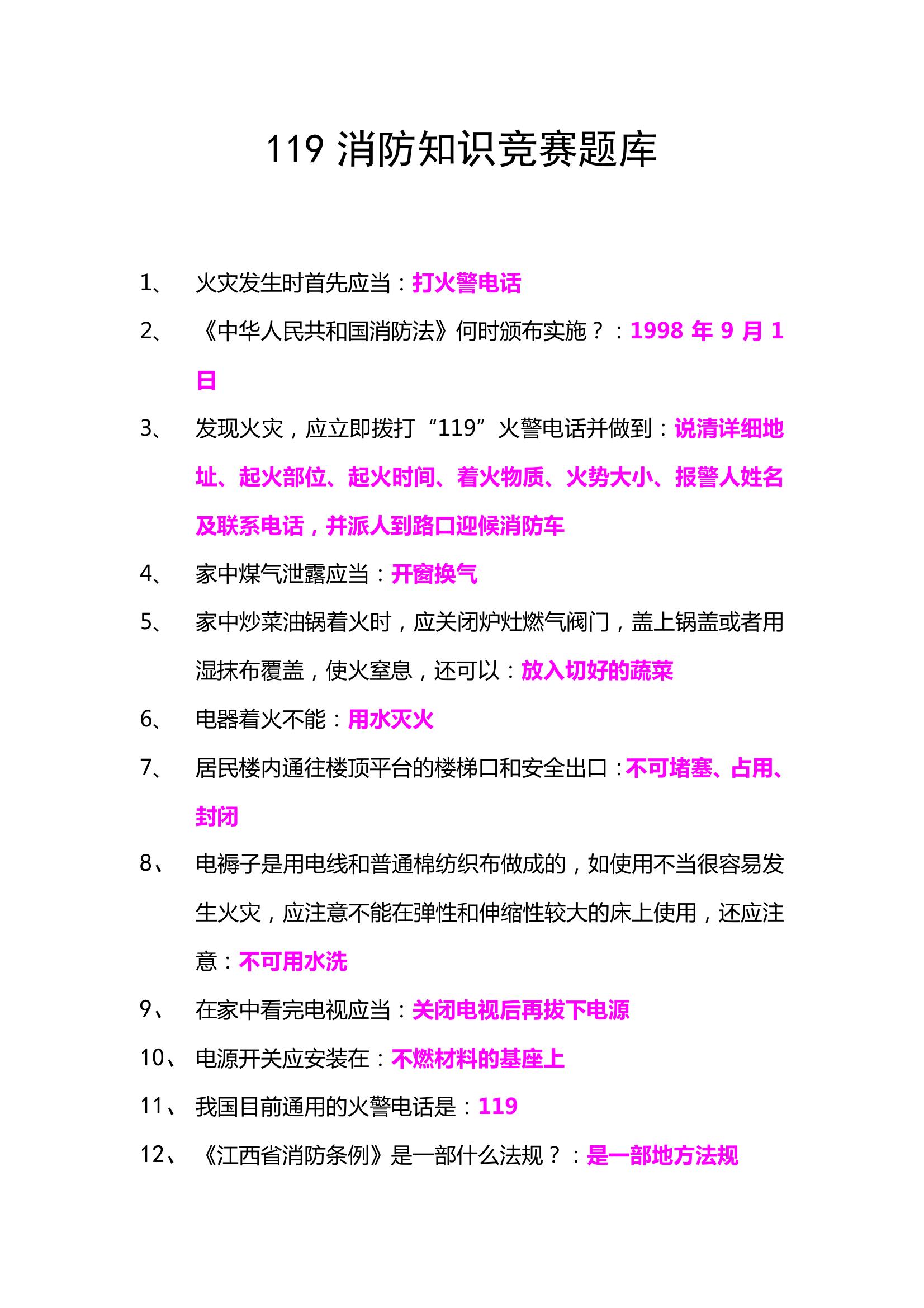 消防知識競賽題庫doc