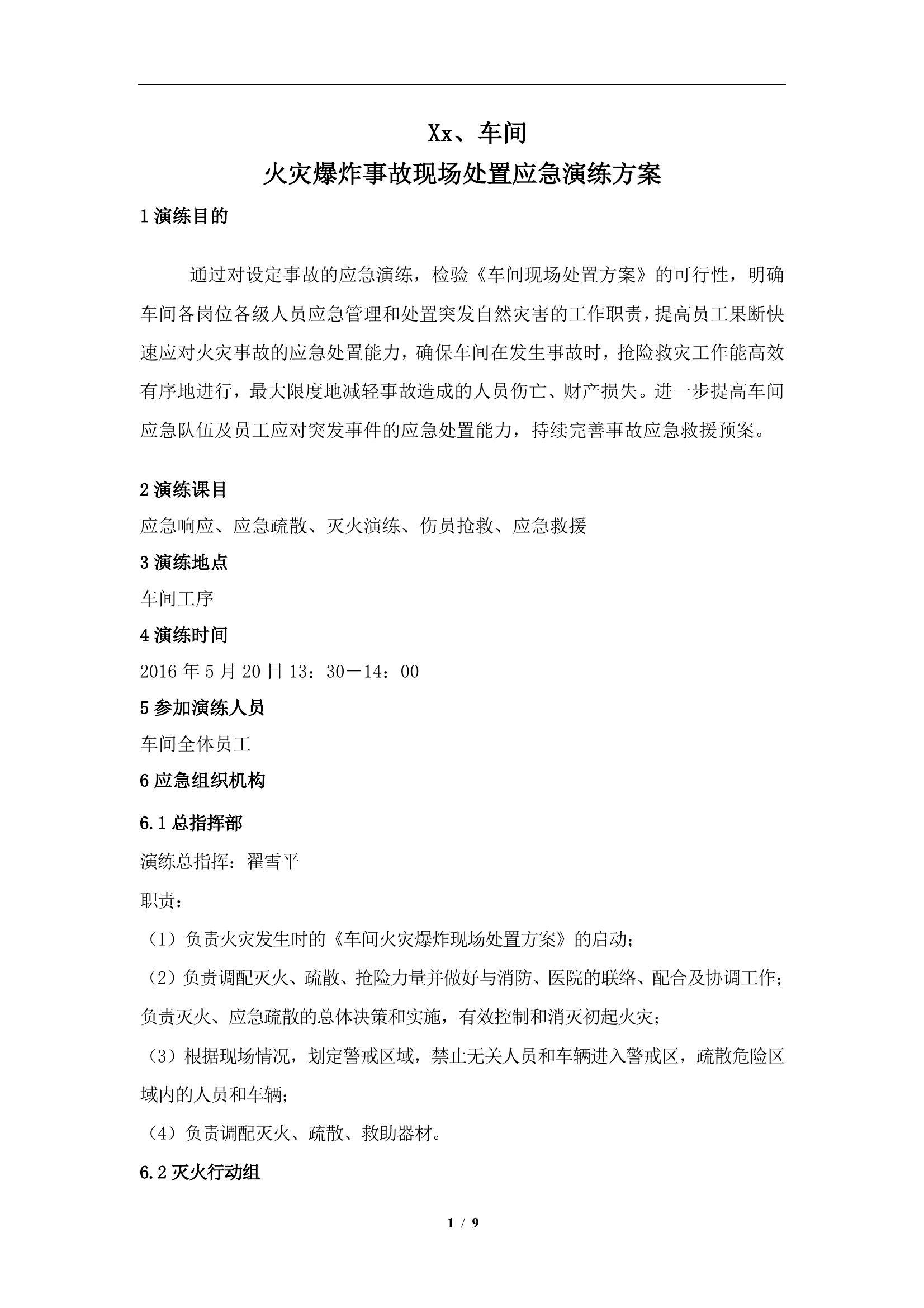 車(chē)間火災(zāi)爆炸事故現(xiàn)場(chǎng)應(yīng)急救援演練方案doc