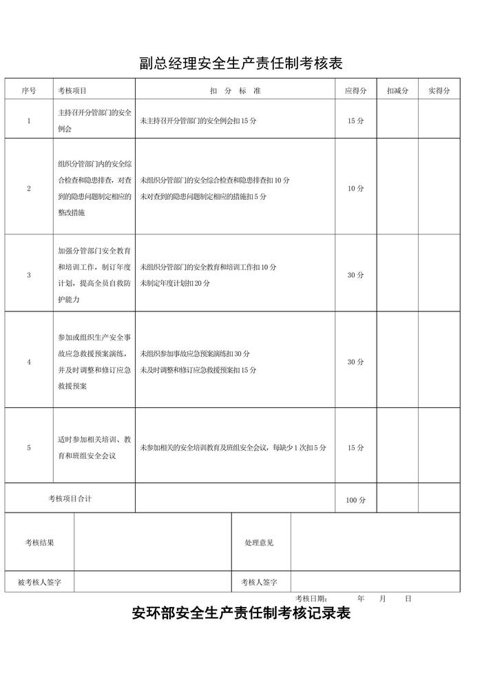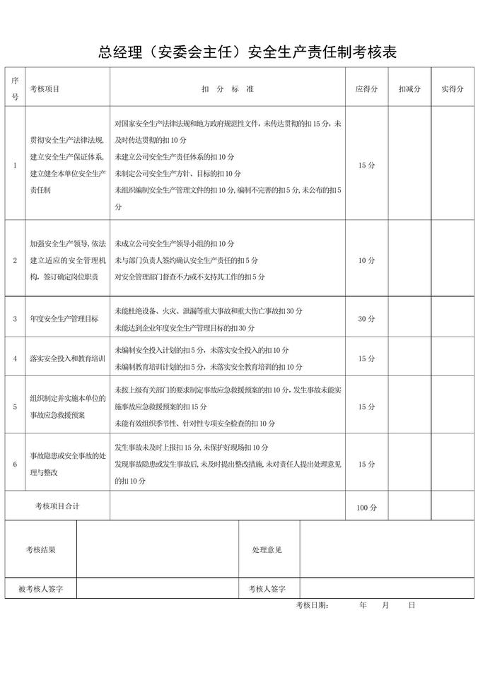 安全生產(chǎn)責(zé)任制考核表(全套)doc