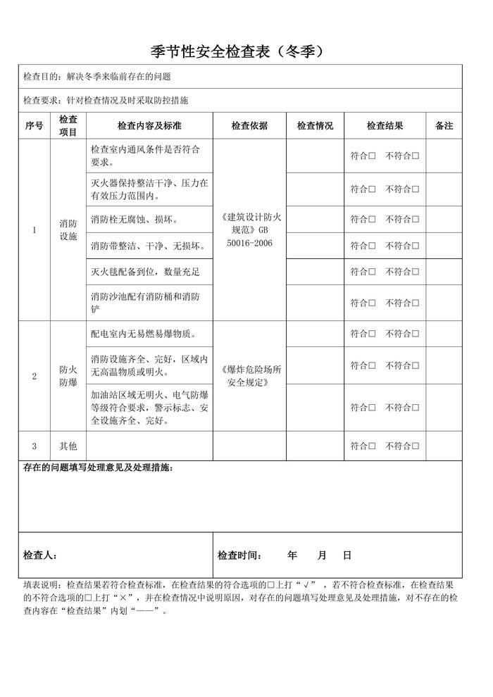 加油站季節(jié)性安全檢查表(冬季)docx