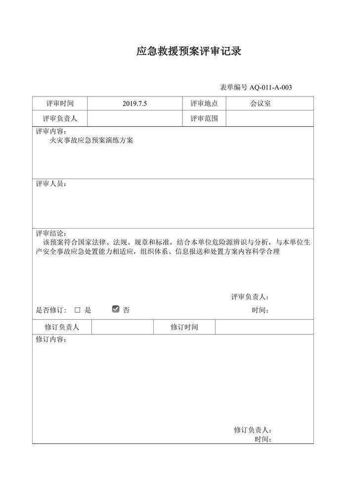 應(yīng)急救援預(yù)案評(píng)審記錄doc
