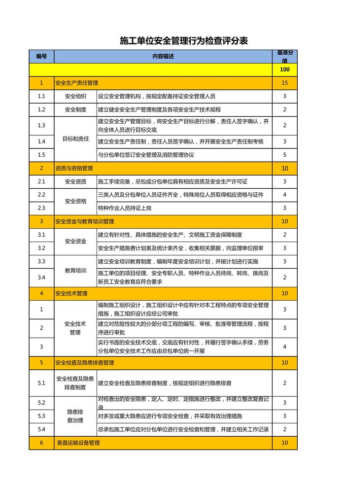 施工單位安全管理行為檢查評分表xlsx