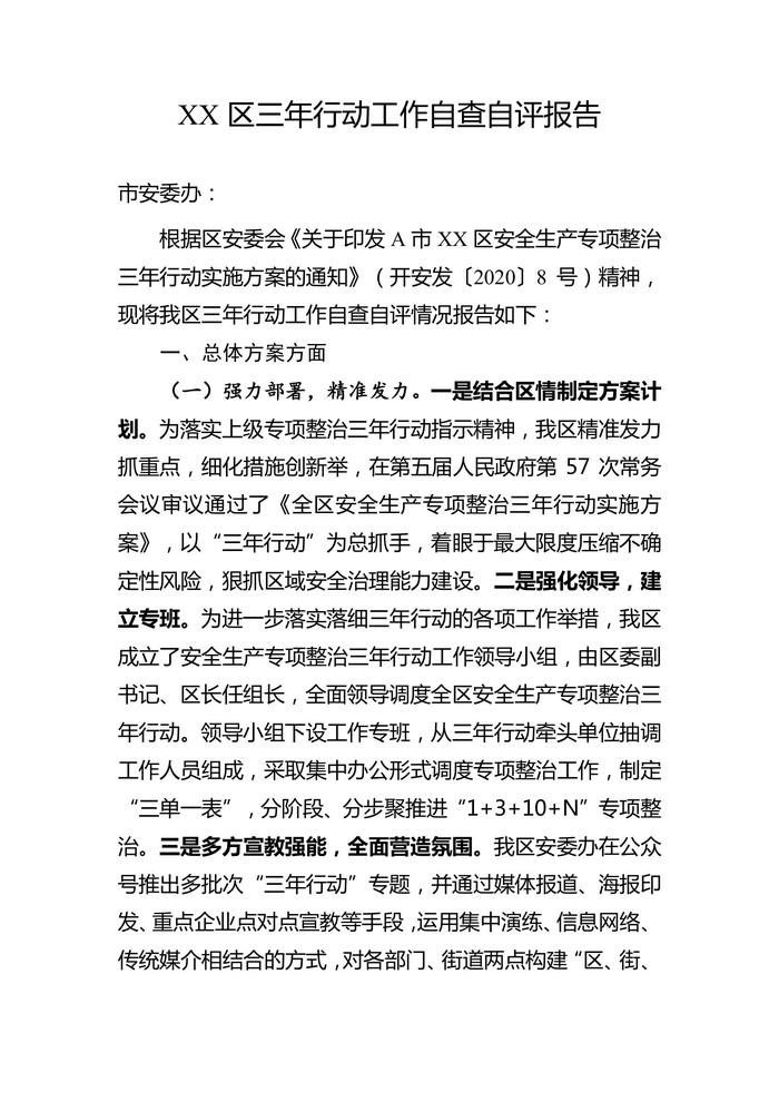 安全生產(chǎn)專項整治三年行動工作自查自評報告docx