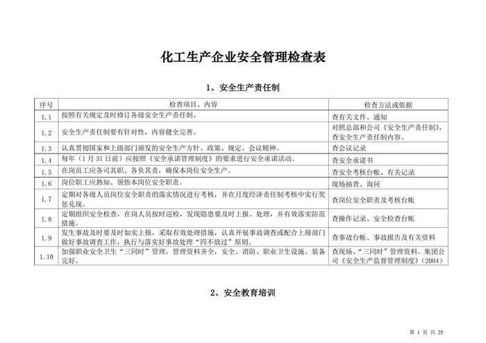 化工生產(chǎn)企業(yè)安全管理檢查表doc