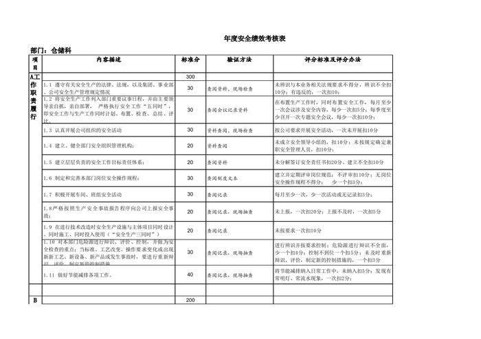 食品生產(chǎn)企業(yè)年度安全績效考核表xls