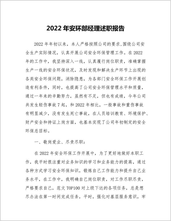 2022安環(huán)部經(jīng)理述職報(bào)告(14頁(yè))docx