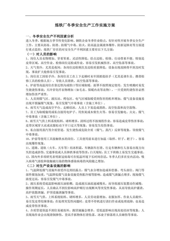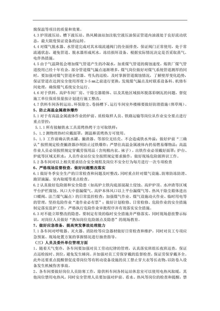 2022煉鐵廠冬季安全生產方案doc