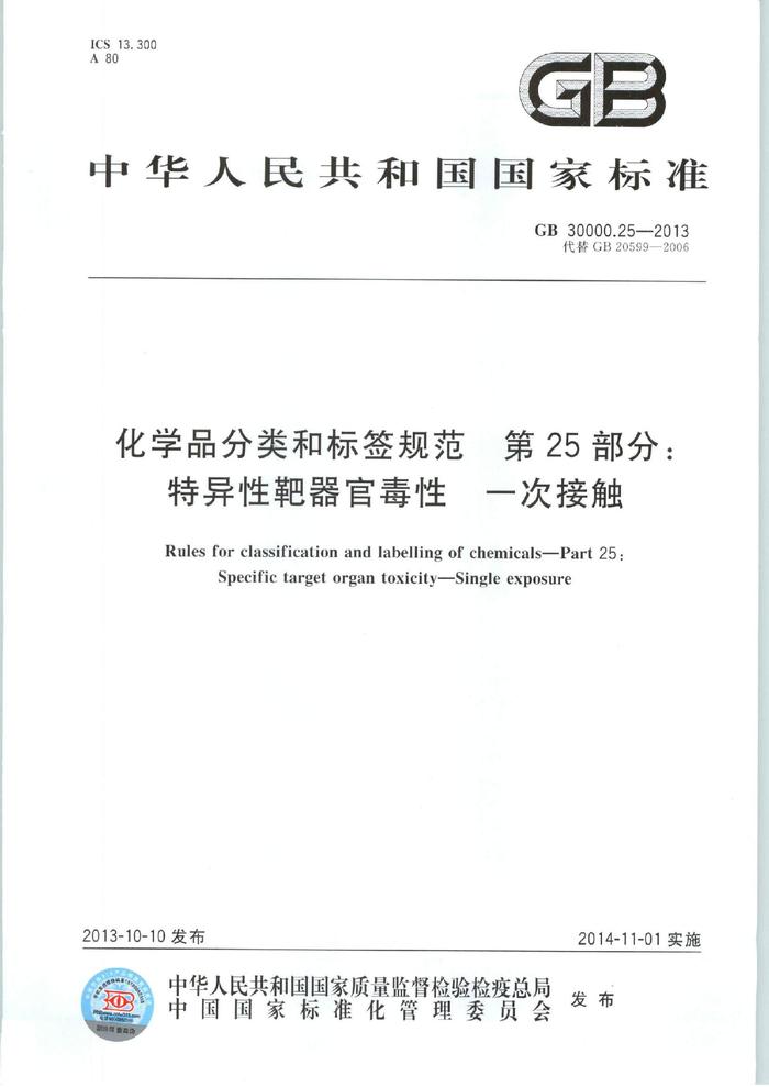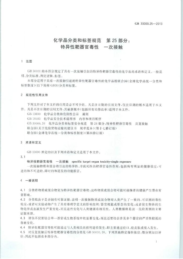 GB 3000025-2013 化學(xué)品分類和標(biāo)簽規(guī)范 第25部分:特異性靶器官毒性 一次接觸pdf