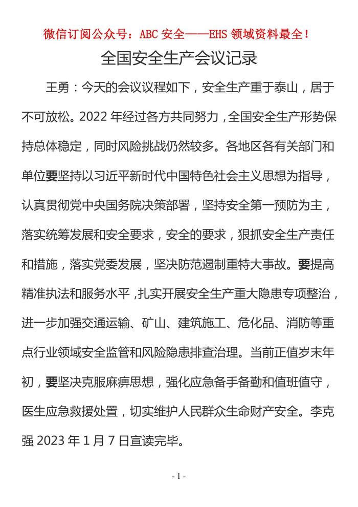 全國(guó)安全生產(chǎn)會(huì)議記錄doc