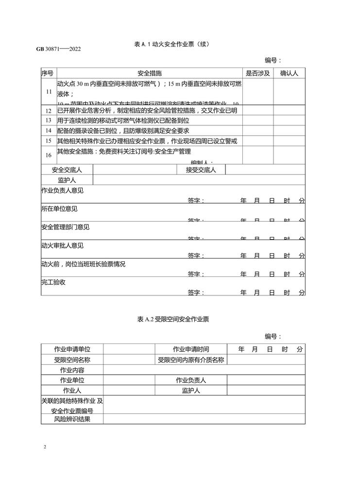 GB 30871-2022 危險(xiǎn)化學(xué)品企業(yè)特殊作業(yè)安全規(guī)范作業(yè)票docx