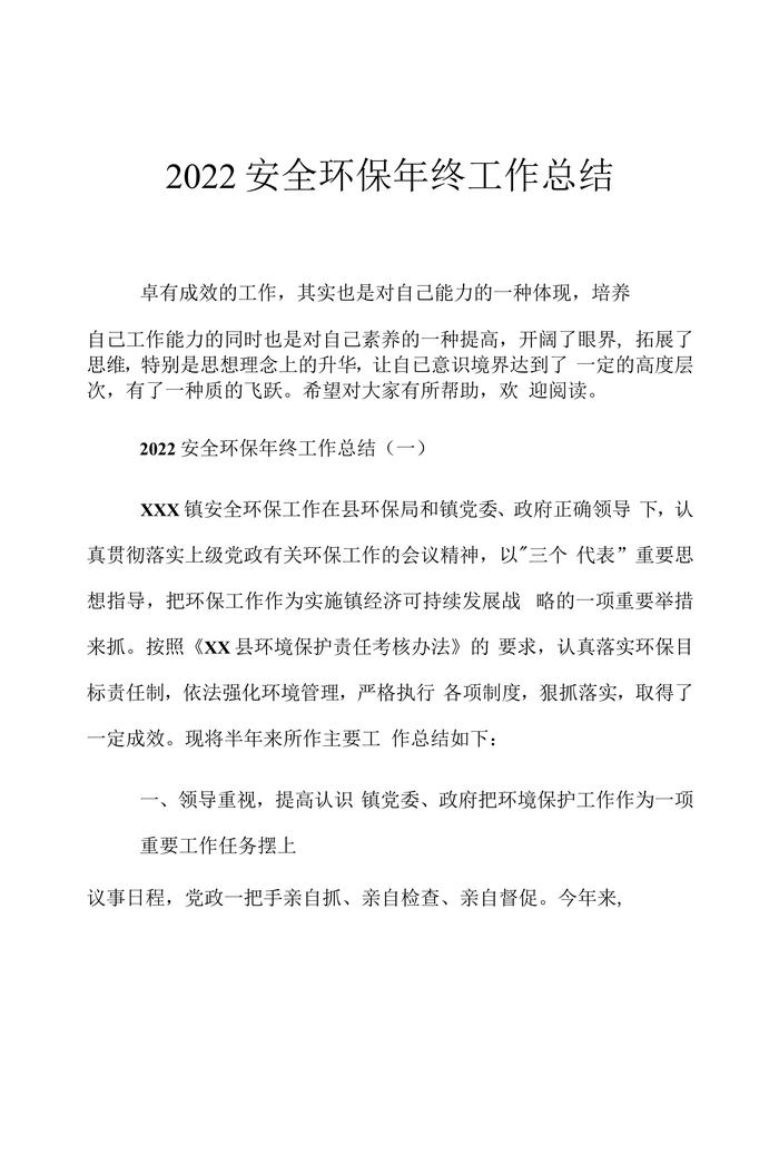2022安全環(huán)保年終工作總結(12頁)docx