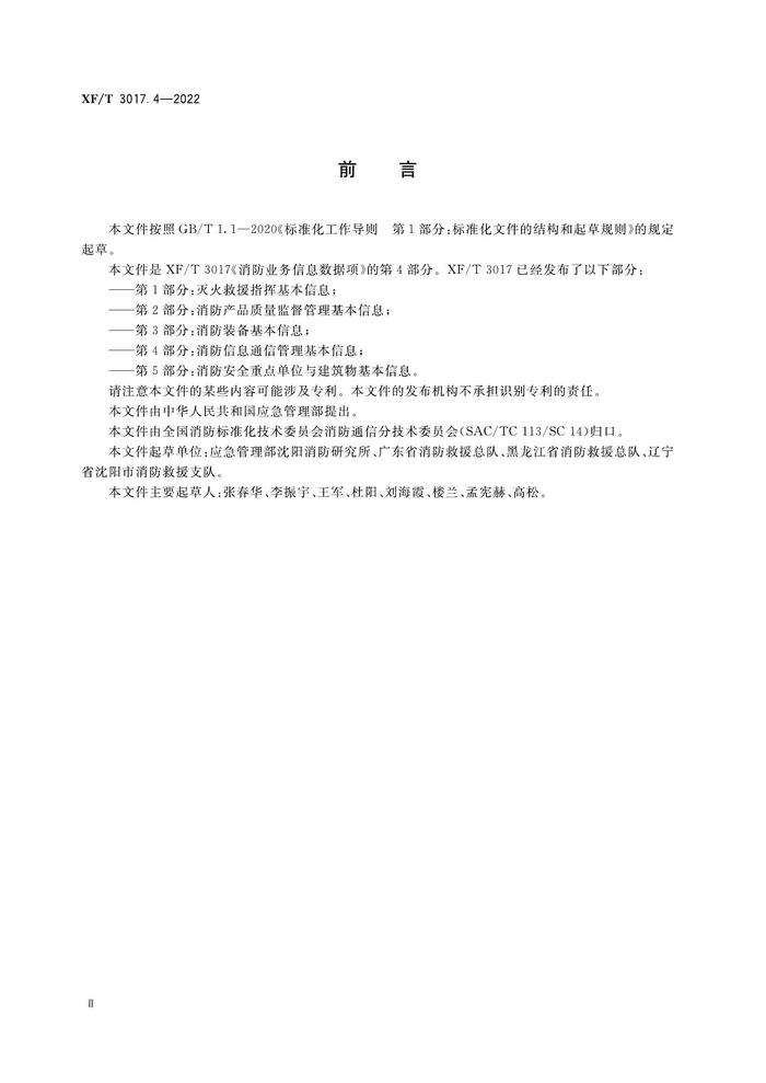 XFT 30174-2022 消防業(yè)務(wù)信息數(shù)據(jù)項(xiàng)第4部分:消防信息通信管理基本信息pdf