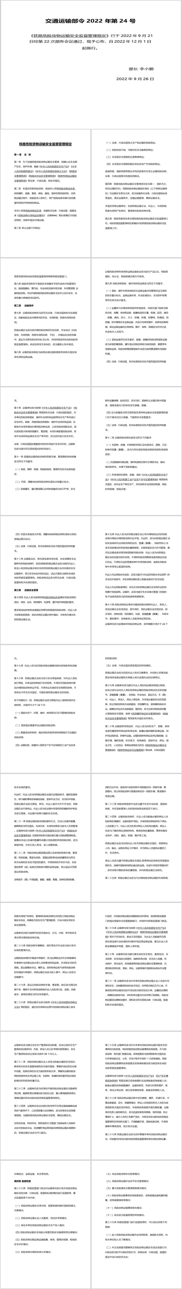 2022年12月實(shí)施《鐵路危險(xiǎn)貨物運(yùn)輸安全監(jiān)督管理規(guī)定》pptx